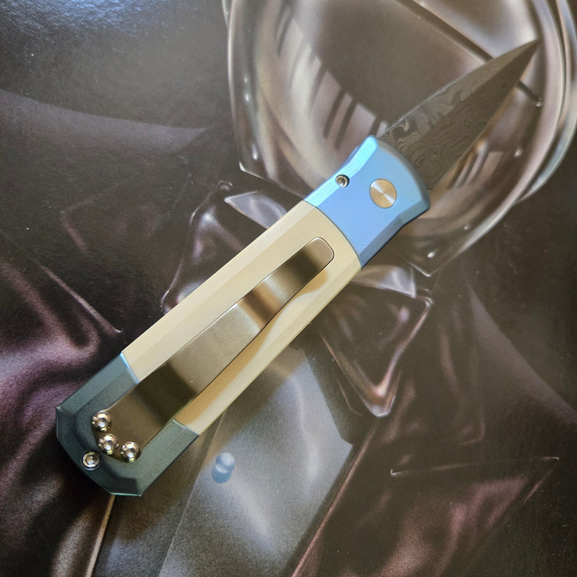 Protech 2025 Custom 005 Godson Blue Titanium Chad Nichols Virus Damascus Auto