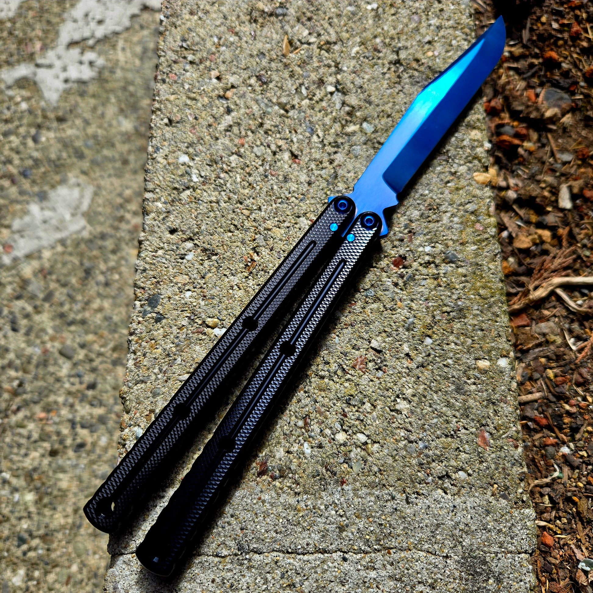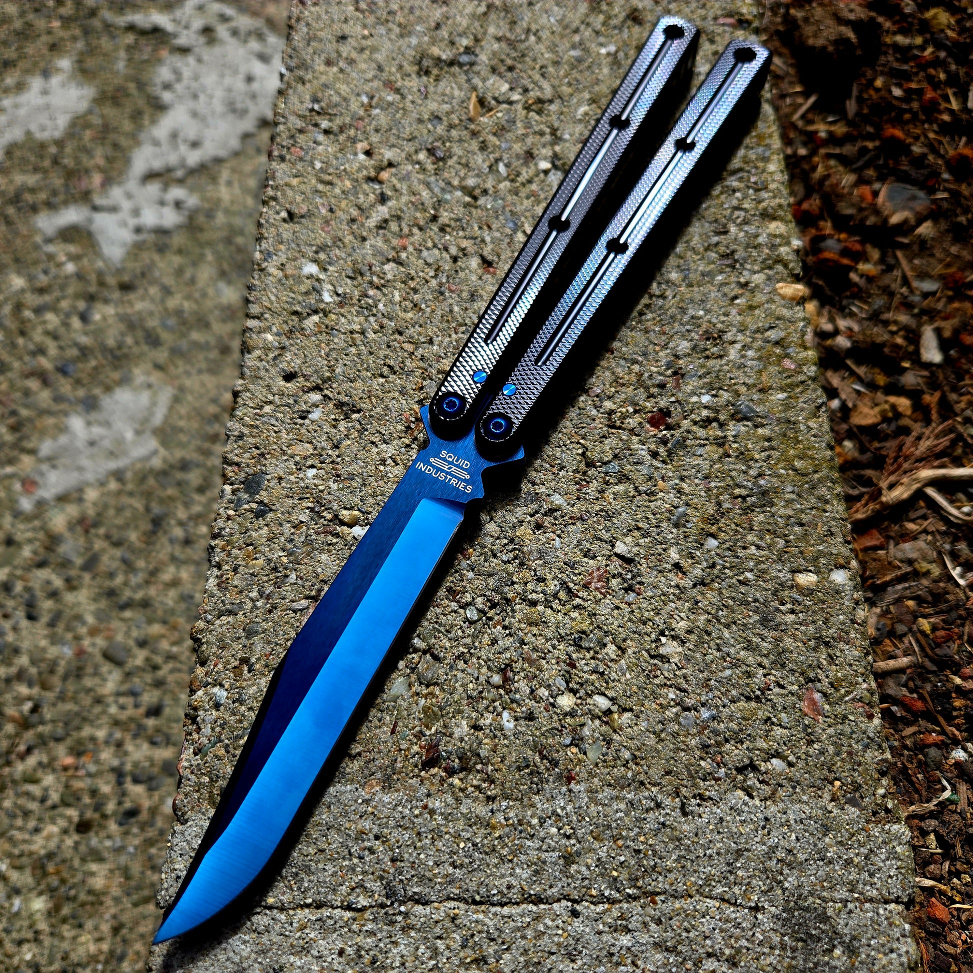 Squid Industries Krake Raken V3 Black Ti Sapphire Blue Bowie Balisong